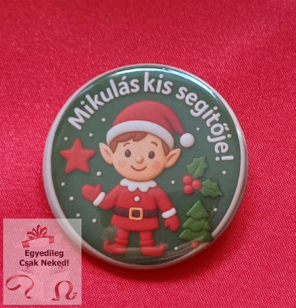 Egyedi 3D hatású Mikulás kis segítője kitűző