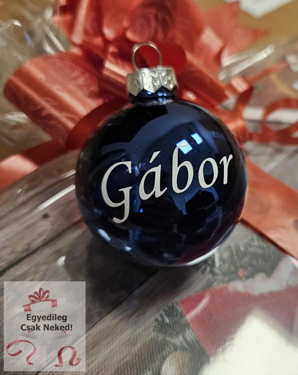 Az üveggömböt kérheti bármilyen névvel melyet a szövegmezőbe tud számunkra rögzíteni a megrendelése során.